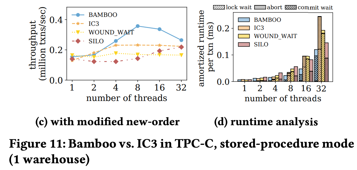 - (b) Bamboo는 lock-wait time이 거의 없음 (abort는 있지만 낮은 비중)