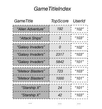 이런 테이블이 있다. 파티션키는 UserId, 정렬키는 GameTitle이다.